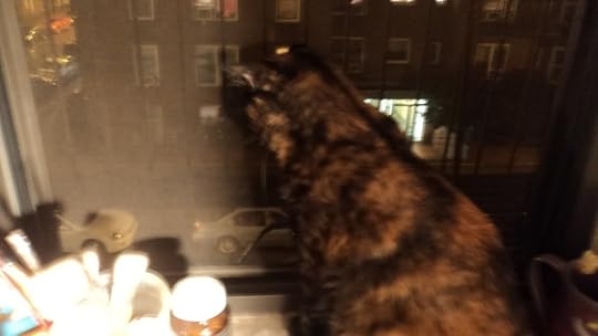 this is maggie watching the hurricane. she was unimpressed.