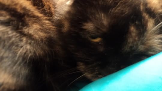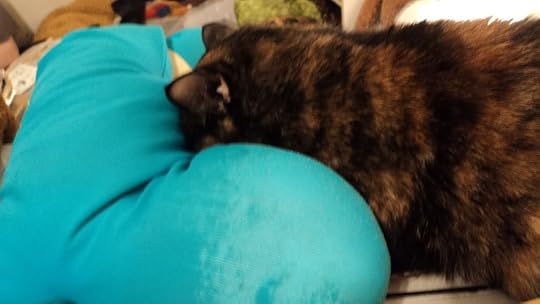 awww and now she is burying her face in this soft pillow that she has since clawed open, causing tiny styrofoam balls to go everywhere...