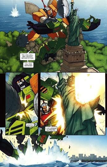 Not quite as good as volume 1 dues to some poor art in places and the pacing was off at the end. All of the sudden the Autobots are fine halfway through the book and they go to end the war in a rush. It felt like IDW may have pulled the plug halfway through this volume and McCarthy had to tie things up in a hurry. That being said, there's still some awesome moments in this story. I loved the dichotomy between Megatron and Starscream. And then there's this:
