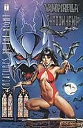 Первое впечатление после чтения последних строк - WTF?? Ну действительно, чушь редкая. Если кратко - сюжет арки состоит в том, что некая армия Хаоса решает напасть на церкви, собственно, дабы всё это привело к хаосу, но внезапно им мешает Вампирелла (тут я вот даже не в курсе кто это, до появления у меня сего сингла и не слышал этого имени), калечит и убивает маленький отряд сей армии Хаоса, и уходит в закат. Затем нам таки показывают Шейдоухавка (тоже хз кто это, не слышал, не знаю), показывают что он тоже разносит небольшой отряд красной армии Хаоса (которые выглядят, собственно, абсолютно так же, как и сам Шейдоухавк, различия только в цвете костюма), за этим всем наблюдает Вампирелла, и почему-то нападает на него (sic!). Ну короче, дерутся они, дерутся, не понимают что вроде как на одной стороне, и случается такое дело, что Вампирелла берет верх в этой схватке, и что-бы вы думали? Ага, кусает за шею. И, собственно, через несколько дней она понимает, что что-то сделала не так, а Шейдоухавк к этому времени уже стал вампиром. The end of book 1.