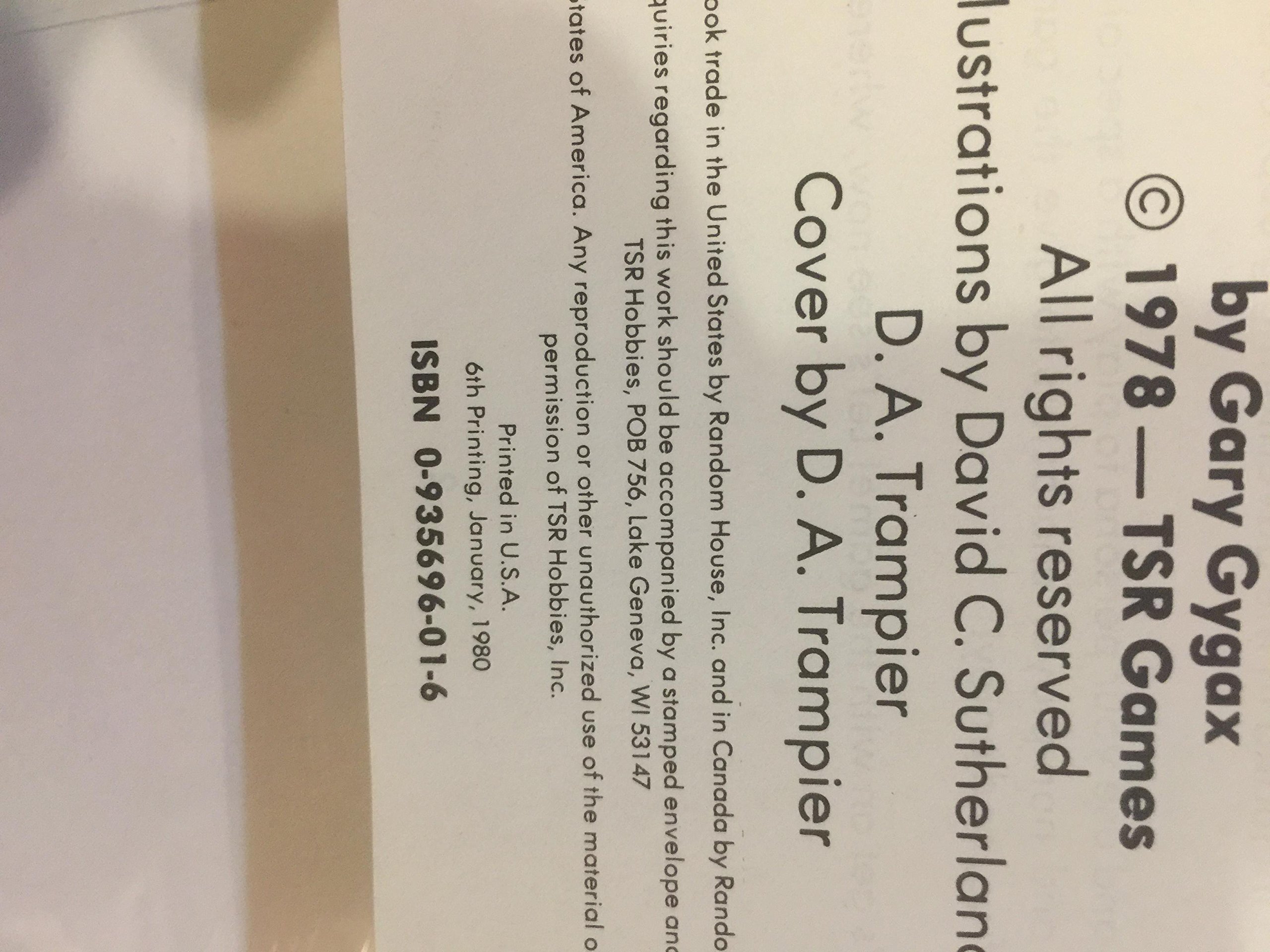 This is the first of the series of the world famous AD & D role-playing aids. To complement the original version we've asekd new cover art. It is the ideal vehicle of imagination for intermediate through advanced players, ages 10 and up. #2010 1978 TSR By Gary Gygax illustrations by David C. Sutherland III