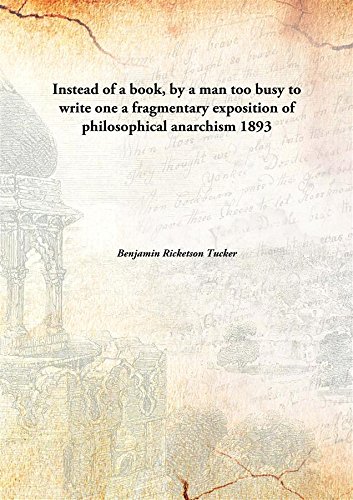 eng, Pages 540. Reprinted in 2013 with the help of original edition published long back[1893]. This book is in black & white, Hardcover, sewing binding for longer life with Matt laminated multi-Colour Dust Cover, Printed on high quality Paper, re-sized as per Current standards, professionally processed without changing its contents. As these are old books, there may be some pages which are blur or missing or black spots. If it is multi volume set, then it is only single volume. We expect that you will understand our compulsion in these books. We found this book important for the readers who want to know more about our old treasure so we brought it back to the shelves. (Customisation is possible). Hope you will like it and give your comments and suggestions. Original Instead of a book, by a man too busy to write one a fragmentary exposition of philosophical anarchism 1893 [Hardcover], Original Benjamin Ricketson Tucker
