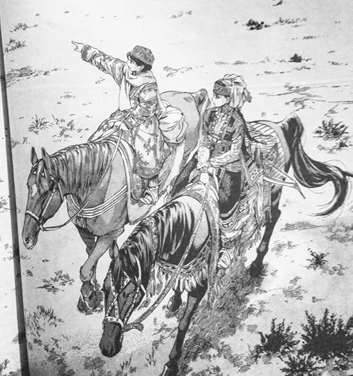 Earlier, I mentioned that I was happy to have Kaoru Mori as my guide in the foreign world of the 19th century Caspian region. My ignorance of the region and its history is complete. I know less about the 19th century Silk Road than I know about nearly every other place and time ever. I am, in other words, a complete foreigner. Mori has my whole trust and I have no idea how deeply she is embellishing or romanticizing the culture. She could actually be lying outright and I wouldn't know. The entire premise could be built on fantasy or sci-fi. But it doesn't matter, not to me. Mori's vision is so splendidly realized that the reality of it doesn't matter at all, not to me. I've been introduced to a world that, in any case, no longer exists (I presume) and I am wholly invested in that world. It's strange and frightening and exuberant. Despite the fact that I am being ably escorted through the region by a steady hand, the entire experience effuses a sense of adventure. And really, what better thing could be said for a book? ___________________