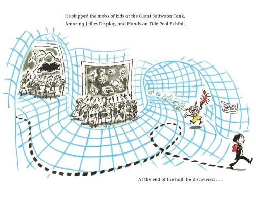 This is child-centered fiction. The adults don't get in the way (Dad, Librarian--and where was aquarium security? Quietly never pictured.), and Elliot moves forward assuming they won't--even though I was worried the entire time about when he would be found out. "Wild surprise ending"? No, a calm vindication of the story arc. This ending provided not only resolution to my worry, but also deconstructed it--a pleasant ending! And never a worry about there being a 'lesson' to be taught. Hmmm. I would love to see a moral at the end of this story!