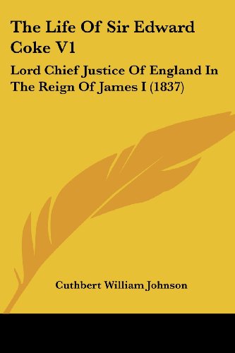 The Life of Sir Edward Coke Lord Chief Justice of England in the Reign of James I is a biography written by Cuthbert William Johnson and first published in 1837. The book is a detailed account of the life and career of Sir Edward Coke, a prominent English lawyer and judge who served as Lord Chief Justice of England during the reign of James I. The biography covers Coke's early life and education, his rise to prominence as a lawyer and member of parliament, and his tenure as Lord Chief Justice, during which he played a key role in shaping English common law and defending the rights of the individual against the power of the monarch. The book also examines Coke's personal life, including his relationships with his family and colleagues, as well as his political and religious beliefs. The author draws on a wide range of primary sources, including Coke's own writings and correspondence, to provide a comprehensive and nuanced portrait of this important figure in English legal history. Overall, The Life of Sir Edward Coke V1 is a valuable resource for anyone interested in the history of English law and politics, as well as for those interested in the life and career of one of the most influential judges in English legal history.With Memoirs Of His Contemporaries. In Two Volumes.This scarce antiquarian book is a facsimile reprint of the old original and may contain some imperfections such as library marks and notations. Because we believe this work is culturally important, we have made it available as part of our commitment for protecting, preserving, and promoting the world's literature in affordable, high quality, modern editions, that are true to their original work.