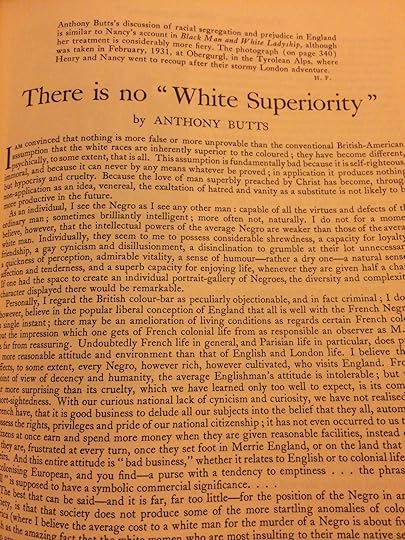 “ About NEGRO. I took it to town with me one week or so ago. I made the usual calls. ILD, WIR, NSL, Musicians League, John Reed Club, etc. In each place in turn, comrades swooped down on the book. And all work ceased while the pages were thumbed while the workers mobbed around from the first page to the last. Dozens of them bid to borrow it. Comments were frequent. Some criticisms- but more, much more enthusiastic praise. Said one: That Cunard dame achieved a United Front with all the bastards, the thing the C.I hasn’t even had a smell at. Just listen to the DuBois lullaby in juxtaposition with the militant awakening martial tune of Communism- Ford, Amis, Gordon and the others. She’s got em booked for like alright. In black and white too.”