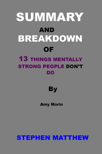This isn't the authority book, however, an informal outline and examination of the book "13 THINGS MENTALLY STRONG PEOPLE DON'T DO " by Amy Morin, presenting to you the crucial concerns in a short-term, simple to burn-through way. It is an approach to get you the critical thoughts from extraordinary books and hits in minutes, not hours.