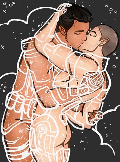 The pairing of two strong, masculine yet emotionally deprived characters, set in the close confines of a space academy room works wonders for the story as the tension is building slowly and beautifully. I didn't expect the angle of self-hate for discovering your true self and needs and desires; it added a lot more depth and 'heaviness' to what could really easily be a very silly plot. And don't get me wrong, there are points, for example, where oral sex is described as just another way to strengthen the bond, but hey, you won't hear me complain about it!