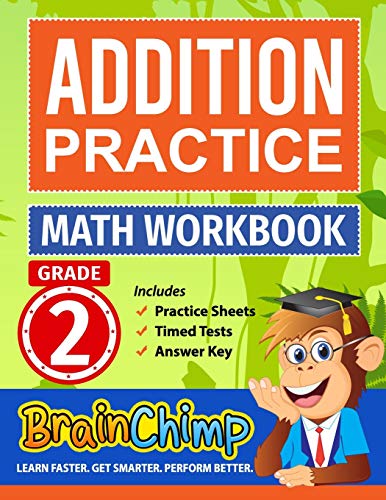 "Addition Grade 2 Math Workbook" is an exclusive BrainChimp book packed with carefully selected exercises to stimulate your child’s Brain and develop a keen interest in the practical application of Math skills. These Addition exercies help children practice and reinforce the essential math skills they learn in school. Regular targeted practice is a proven method of helping children reach their maximum potential and perform better on important standardized tests. The aim of this book is to develop logic and reasoning skills while building better math problem-solving skills and improving self-confidence. The BrainChimp series of books are designed to stimulate the minds of children and empower them with the skills to be more successful in school and beyond. Answer Key is included to measure progress and guide practice. - Word Problems for children Grade-2 (Ages 7-8). - Carefully selected Addition Practice Problems. - Detailed Answers in a separate Answer Key Section. - Work area for every problem to work out the solutions. - Timed Tests included. Skills - Single Digit Addition - Double Digit Addition - Add by 10 - Add by 9 - Add by 8 - Add by 6 - Add by 5 - Add by 4 - Add by 3 - Add by 2 -