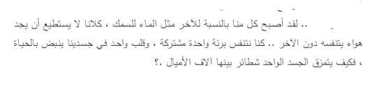 كنت أدرك أنها تهبني عینا .. تهبني عینیها التي أبصرت بهمـا طیلـة علاقتـي بهـا ، وتریـد أن تهـب البشریة جسدها .. لتحیا به في جسد بشر آخرین !! كم هي ارئعة هذه الروح ؟ كم هي عملاقة هذه الروح ؟ كم هي ذكیة هذه الروح ؟