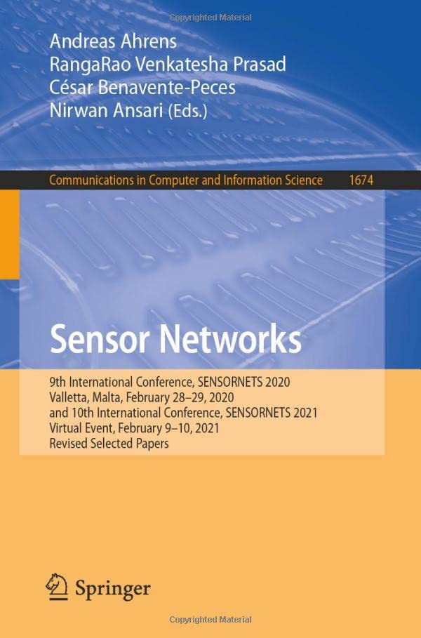 This book constitutes selected and revised papers of the 9th International Conference, SENSORNETS 2020, Valletta, Malta, held in February 2020, and the 10th International Conference, SENSORNETS 2021, held virtually in February 2021. The 7 full papers presented were carefully reviewed and selected from 60 submissions. They focus in all aspects of sensor networks, including hardware of sensor networks, wireless communication protocols, sensor networks software, hardware and architectures, wireless information networks, channel characterization, data manipulation, signal processing, localization and object tracking through sensor networks, modelling and simulation, applications and uses.