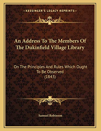 An Address To The Members Of The Dukinfield Village Library: On The Principles And Rules Which Ought To Be Observed