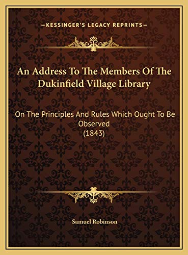 An Address To The Members Of The Dukinfield Village Library: On The Principles And Rules Which Ought To Be Observed