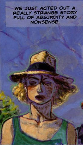 o negócio é que a magia e a esquisitice (sendo esquisitice cognato da magia aqui) muitas vezes operam num plano além da compreensão, se revelando em padrões arbitrários com razões inalcançáveis, frustrantes. a consciência anuvia e o que só pode ser intuído se perde em negações da possibilidade da magia que parecia palpável. como colocou jorge luis borges, com um trecho utilizado no começo do gibi, se a tentativa de adivinhar estas incongruências perceptivas pudesse somente mostrar uma realidade atroz ou então banal, aqui seria banal.