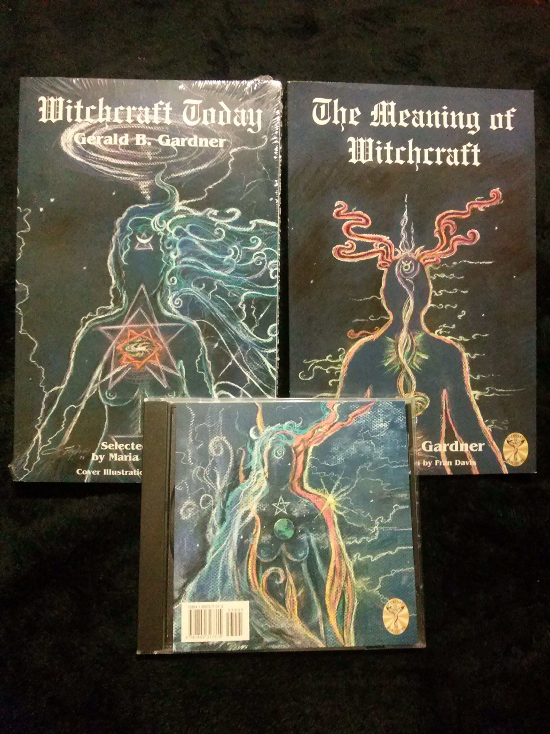 This is a very rare set of Witchcraft Today, The Meaning of Witchcraft, and a CD full of interviews, songs, and chants with Monique Wilson, Patricia Crowther, and Gerald Gardner HIMSELF from the early sixties. Witchcraft Today is 157 pages full of information and useful photos. Quote about Witchcraft Today; "Written shortly after the repeal of the English Witch laws in 1954, WITCHCRAFT TODAY offered the world a new religion, Wicca, and captured the imaginations of spiritual seekers everywhere. The author, Gerald Gardner, was writing about a small, secret coven of hereditary Witches, brave people who had hidden their faith for centuries to avoid persecution. His descriptions of their practices and history, their working tools and festivals, impelled a rediscovery of indigenous British religion and, globally, fueled a movement now boasting between 3 and 5 million members, making Wicca one of the fastest growing religions in the United States. Witchcraft Today also includes important biographical information on Gardner and his historical context." The Meaning of Witchcraft is 286 pages from Mercury Publishing. "Thought to be the father of modern witchcraft, Gerald Gardner published The Meaning of Witchcraft in 1959, not long after laws punishing witches were repealed. It was the first sympathetic book written from the point of view of a practicing witch. The Meaning of Witchcraft is an invaluable source book for witches today. The Meaning of Witchcraft is a record of witches' roots-and a tribute to a founding pioneer with the courage to set that record straight."
