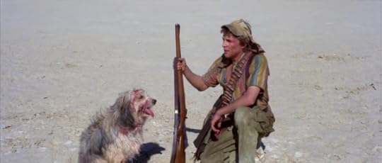 The story gets going when Vic and Blood are at a movie theatre showing vintage stag films, and among the many solo scavengers watching the film Blood informs Vic that he smells a woman. They follow her trail to a building where he corners and rapes her. Despite himself, he starts to develop feelings for her. She encourages his feelings, despite the misgivings of Blood. They then find themselves under attack from other solos who’ve tracked her as well. Eventually the girl Quilla lures him underground to Topeka, a cartoonish version of the lost middle-America. However, it turns out he’s been lured on purpose to serve as a ‘stud’ to impregnate the women there as the men there have lost the ability to do so. The sound-effects here are really great – incongruously cheerful and hokey music plays as Vic and Quilla spread death and mayhem in Topeka in their bid to escape to aboveground. When they get there, they discover that Blood is injured and starving, and Vic has to choose between his loyal dog and his newfound love.