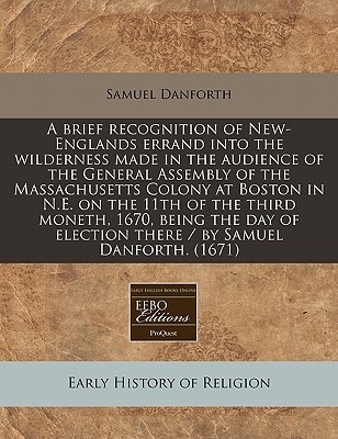 A brief recognition of New-Englands errand into the wilderness made in the audience of the General Assembly of the Massachusetts Colony at Boston in N.E. on the 11th of the third moneth, 1670, being the day of election there / by Samuel Danforth. Danforth, Samuel, 1626-1674. [4], 23 p. Cambridge [Mass.] : Printed by S.G. and M.J., 1671. Wing / D175 English Reproduction of the original in the Henry E. Huntington Library and Art Gallery