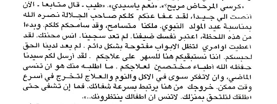 بعد ذلك تبدأ رحلة الألم التي وصفها الرايس فيما تبقى من الكتاب بترجمة خجولة وكثرة ال(...) في نهاية أو وسط العديد والعديد من المقاطع التي لا أعرف ما تعنيه بصراحة ما تبادر لذهني أنها مقاطع ممسوحة ولله العلم؛ أعتقد أنها تفاصيل توصف بالقشور في حضرة هذا الجحيم فاعترف أني تغاضيت عنها