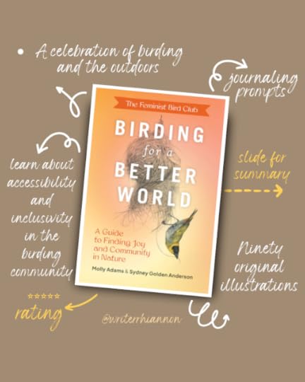 I love birding. I love feminism. I just didn't love this book. Don't get me wrong, I'm still glad I read it. I think I was just expecting to learn more about where I can go to join FBC, but there isn't a branch where I live and it's semi complicated to start one myself. This book also felt heavy at times with laying out all the systemic issues in our country and world, leaving me to feel like there's not much I can do about it. I probably wasn't in the right headspace when I read this book, and I'm hoping I'll be more readily available to think about the deep questions posed during the journaling prompts.