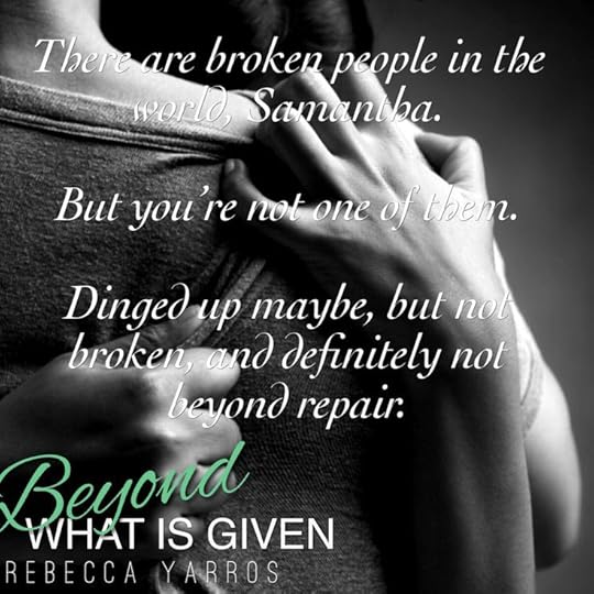 There are broken people in the world, Samantha. But you're not one of them. Dinged up maybe, but not broken, and definitely not beyond repair.