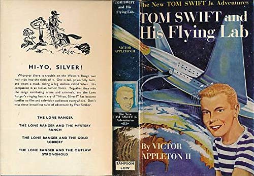 Tom Swift - boy genius - outsmarts evil scientists, solves confounding mysteries, and builds incredible rocket ships, atomic energy plants, submarines, airplanes, robots, and mind-boggling inventions for the good of mankind!Join Tom as he journeys to the unknown and faces new challenges in -TOM SWIFT AND HIS FLYING LABOther action-packed adventures starring Tom Swift Swift and His JetmarineTom Swift and His Rocket ShipTom Swift and His Giant RobotTom Swift and His Sky WheelTom Swift in the Caves of Nuclear FireVictor Appleton II. Tom Swift and His Flying Lab. New Grosset & Dunlap, [1978]. Tempo Books. a Filmsway Company. 208 pages.