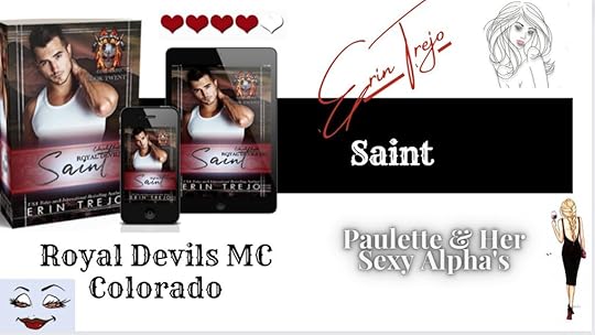 Saint Royal Devils MC, Colorado #4 by Erin Trejo is the last book in this series and boy did Erin Trejo save the best for the last in true MC fashion. Saint's story was an emotional, fast paced storyline with amazing characters who jump off the page pulling you in, this is one story you didn't want to end! The journey these two take was heartfelt and emotional as both characters are dealing from pain from their past. Saint had a traumatic childhood which has made him the man he is today as he has found a family with his brothers of the Royal Devils MC. Saint is this intense larger than life biker who lives his life his way, has a soft spot for children but closes himself off from relationships in fear of getting hurt. When he sees a young boy being bullied and intimidated, Saint steps in to help him as he wished someone helped him when he was younger. As he talks to him he gives him encouragement and offers to help him defend himself. When he hears a voice behind him he is struck by this sassy, beautiful woman who wants to know why he would want to help her son, the chemistry between them is instantaneous as fate will soon intervene.