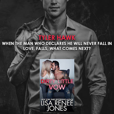 Tyler was a bit blindsided when he realized how much he loves her. His fear he was going to get her hurt caused him to keep pushing away. Bella wasn't about to let that happen. That was how strong her love and her faith in him was - even being kidnapped she believes in him. Though, if you know Bella, she didn't just wait to be rescued. She did well an excellent job of getting herself out of that particular jam. You have to read DIRTY LITTLE VOW to find out all the details.