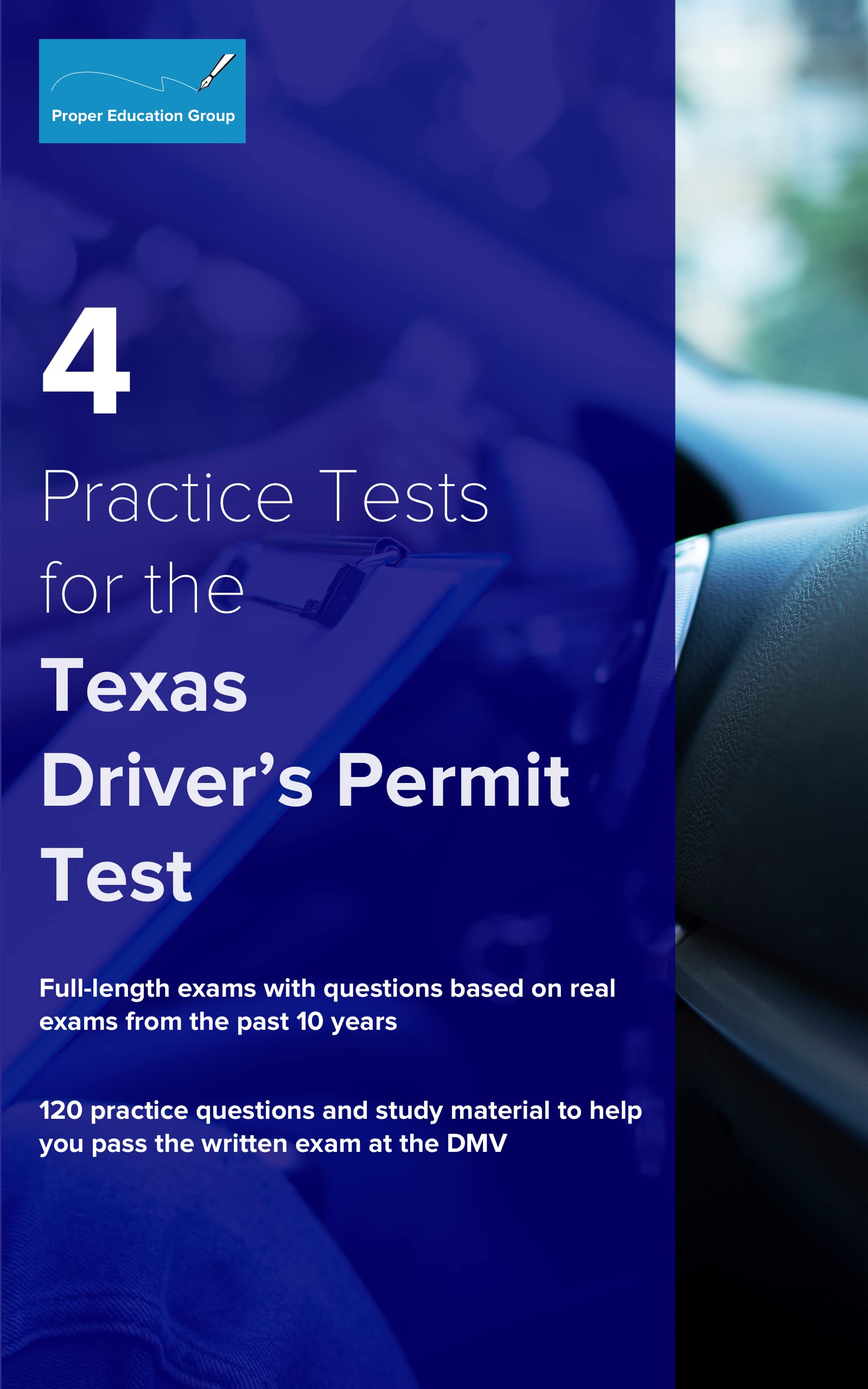 Proper Education Group’s 4 Practice Tests for the Texas Learner Permit Test is a must-have all-in-one Texas driving permit test prep book.