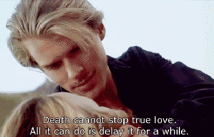 Because honestly, i would have been less tired and mentally exhausted had i been banging my head against the walls, instead of having read this!! Maybe if i lived in a dark, moisty crypt(?) this would have some sort of appeal to me...but i'm a proud thirty four year old cynic (YAY!), so reading about love through death (let the violins play)...thanks, but no thanks!!