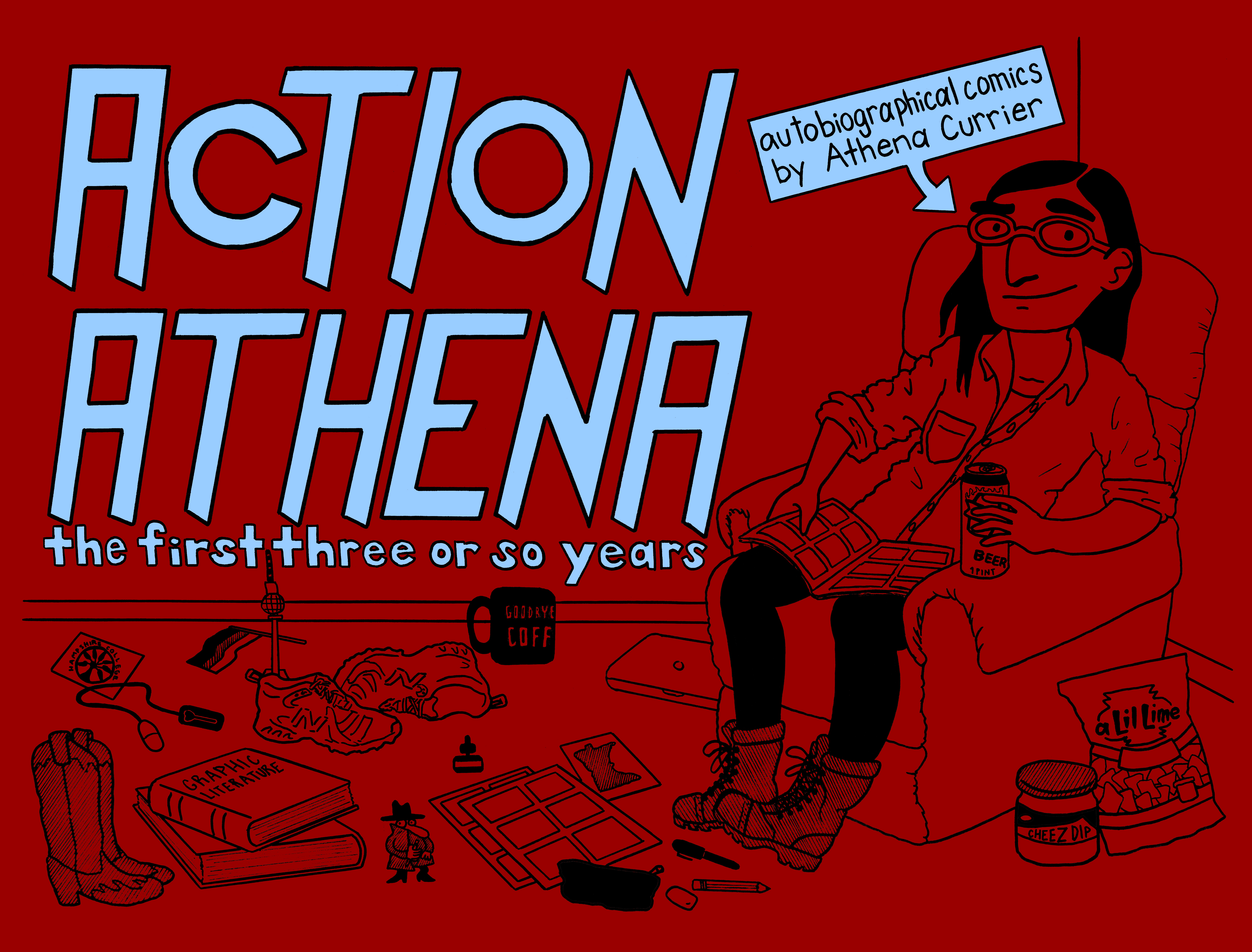 Action Athena is an ongoing autobiographical comic strip by Athena Currier. This volume collects the first 3+ years of comics. Join Athena as she attends Hampshire College, travels to Berlin, misses Minnesota, and wonders what the heck kind of jobs there are for cartoonists with college diplomas.