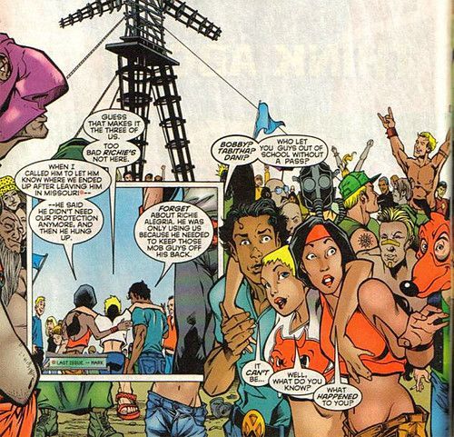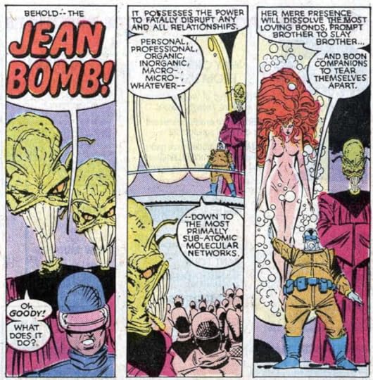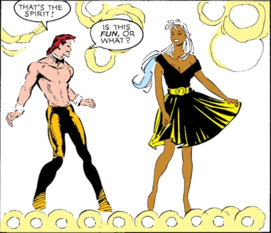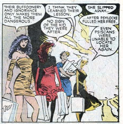 Remember that time the X-Men hung out in the Australian outback? Sure you do. The X-guys and X-gals take turns taking a break from the hot-assed encampment. Some of the ladies do what every unimaginative writer has female characters do – shop.