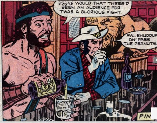 In the other, cross out road trip and insert drinking at a bar. Forsooth, it’s Wolverine against Hercules…