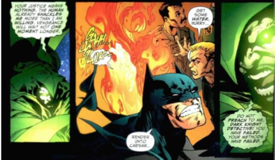 Instead of pulling up his Bat-Depends and pointing The Spectre in the direction of The Joker, the Bats has words with The Spectre. Harsh words.