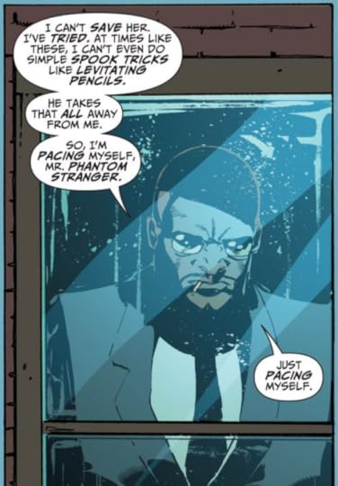 The Phantom Stranger shows up but instead of, well, saving people from getting butchered, he tells Mr. Allen to man Spectre-up and take charge.