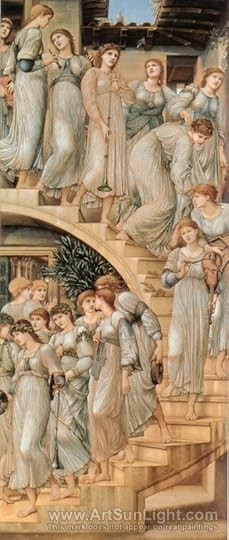 EBJ's life reads like the who's who of Victorian cultural elite. It didn't start that way. He was born in dignified poverty in Birmingham before this town reaped the benefits (and ravages) of the industrial revolution. There is little question that an encounter at Oxford with a son of privilege with equally aesthetic interests , William Morris, would change the course of his life for the best. Burne Jones might have started out to become a curate but after much excited conversation with Mr. Morris in France, they set on a course to become aesthetic revolutionaries.