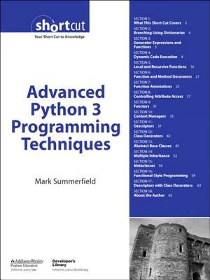 This short cut is taken from Programming in Python 3: A Complete Introduction to the Python Language (Addison-Wesley, 2009) and provides self-containedcoverage of Python's advanced features. Most of the techniques covered arenot needed every day, but in the right circumstances they can make a crucialdifference, allowing us to write clean and straightforward code rather thanhaving to resort to hacks and workarounds to achieve what we need. The shortcut explains a range of procedural, object-oriented, and functional-style techniques, and the information provided will be a considerable addition to mostPython programmers' toolboxes.