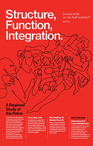 The March 2023 issue of Structure, Function, The Journal of the Dr. Ida Rolf Institute (Volume 51, Issue 1) is focused on ‘A Regional Study of the Pelvis’. Two of our articles feature interviews with Rolfing® SI Instructors, one about the pelvic relationships addressed by Dr. Ida Rolf’s ‘Ten Series’ and the other about fascia, pain, and the pelvis. We also have a thought-provoking conversation with anatomist Dr. Gil Hedley about the anatomy of the pelvic floor. This issue launches a few new columns, a client’s experience with Rolfing SI, a fresh take on doing manual therapy with pregnant women, and a request to our readership to start the conversation about the business of Rolfing SI. Check out our ‘Fascia Insights’ column, where we talk with osteopath and researcher Isabelle Gilbert about her study quantifying soft tissue mobilization of Cesarean section scars. You may have noticed that the Dr. Ida Rolf Institute has published The Rolfing Skillful Touch Handbook. In this issue of SFI, you can read about how the authors brought this writing project together. And do not miss the article about how to find your living ‘Line’ by working with The Original Tuning Board™. Enjoy!
