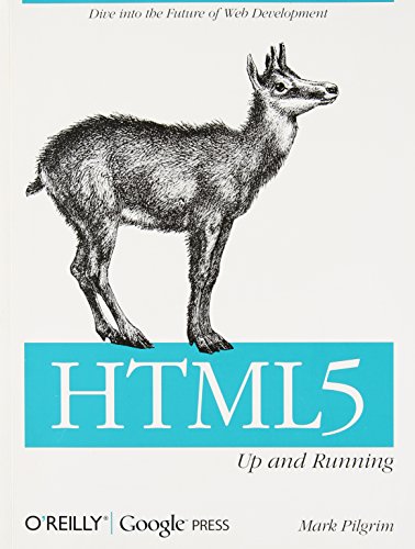 If you don't know about the new features available in HTML5, now's the time to find out. The latest version of this markup language is going to significantly change the way you develop web applications, and this book provides your first real look at HTML5's new elements and attributes. Even though work on HTML5 is ongoing, browsers such as Safari, Mozilla, Opera, and Chrome already support many of its features -- and browsers for smart phones are even farther ahead, especially iPhone's MobileSafari browser. With Up & Running , you'll learn how this new version enables browsers to interact with JavaScript much more easily than before. You'll also learn how HTML5 can help you develop applications This concise guide is the most complete and authoritative book you'll find on the subject. Author Mark Pilgrim writes the weekly digest for the HTML5 Working Group, and represents Google at conferences on HTML5's capabilities. Stay ahead of the curve. Order a copy of this book today. Five Things You Should Know About HTML5