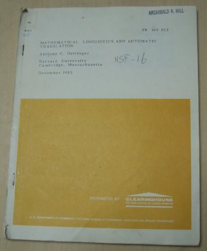Mathematical Linguistics and Automatic Translation NSF-16 by Anthony G. Oettinger