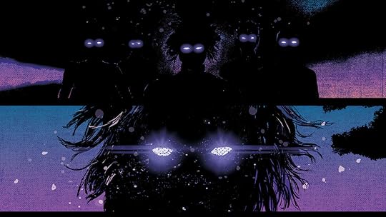 The color work is strong throughout but some of the lines get really rudimentary as the book continues, especially as newer characters are introduced. I had a hard enough time keeping track of who's who without also scrutinizing renderings to figure which of the pale guys a character might be. And in fairness some of that sketchiness is one hundred percent the fault of the story. I have literally no idea who the government people are who are conspiring to keep the Indigo Children contained. While I can appreciate identities being kept a plot twist for later, actually having names or even labels for important characters would be helpful.