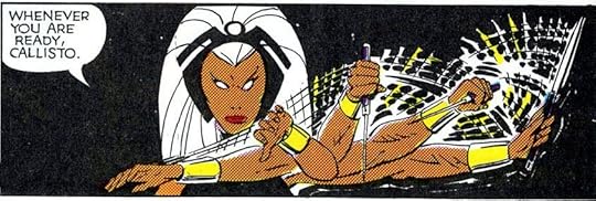 The Rogue story is interesting but not given enough time, and the Wolverine material would probably have been better without editorial interference. Reportedly, Jim Shooter, the worst person to ever stain the Marvel masthead with his name, wouldn't allow Claremont or any other writer to portray any queer relationships. Claremont had intended on having Storm fall in love with Yukio, a Wolverine side-character. Instead, Claremont writes Storm so that she meets Yukio is enamored of her, then cuts her hair into a mohawk and starts wearing leather, which is about as obviously coded as you can get. Cheers to Claremont on that. May Jim Shooter trip today, chipping a tooth and having one of his eyes fall out. The entire comic industry would rejoice in the news.