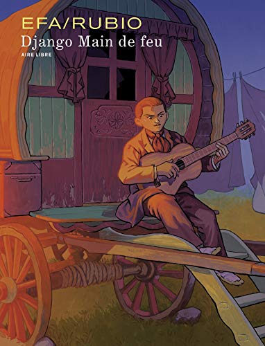 Django Reinhardt est une légende. Mais Django — "celui qui réveille" — est aussi né deux fois. Une première fois dans la neige, durant l'hiver 1910 dans une famille de nomades stationnée à Liberchies, en Belgique. La seconde à Saint-Ouen, près de Paris, à l'automne 1928, quand l'incendie de sa caravane lui mutila la main gauche. Le scénariste Salva Rubio et le dessinateur Efa avaient déjà signé ensemble un remarquable biopic sur Monet en 2017, rendant hommage à l'obsession du peintre pour la lumière. De même, ce biopic consacré à la jeunesse du musicien prodige met en scène la passion et l'obstination de celui qui s'est toujours considéré comme le plus grand guitariste du monde. Dans ce récit-partition, en découpant les cases comme des accords, le dessinateur anime la romance d'une vie en vibrations aquarellées pour mieux accompagner le cheminement musical et technique de l'inventeur du jazz manouche. De la musette au jazz, du violon au banjo puis à la guitare, la destinée de Django est celle de sa main de feu, habitée par le "duende" qui brûle dans l'âme du musicien manouche. Celle d'un miraculé qui renaît de ses cendres, plus éblouissant que jamais. Musique !