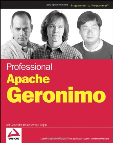 Geronimo is a popular production-grade Open Source J2EE 1.4 certified server available free of charge. It is the only server of its kind licensed under the Apache Software License 2.0, allowing free adaptation and modification for commercial or non-commercial use. The server is well-supported internationally by a large base of users, developers, and support vendors. Geronimo can host a variety of server applications. It comes equipped with a relational database server and message broker, enabling you to immediately deploy your enterprise applications.With all this potential, getting started with Geronimo can be a daunting task. This team of experienced authors has crafted a book to make your experience with Geronimo go smoothly -- and they've packed it with numerous examples of configuration and deployment for the Geronimo server. Whether you've been using a commercial J2EE server or this is your first encounter with an application server, you'll quickly learn what Geronimo can do for your environment.What you will learn from this book* How to configure and deploy a J2EE application on Geronimo* Ways to download, install, configure, and secure the server* Expert tips on server customization and tuning* How to use the various administrative, management, and troubleshooting tools that accompany Geronimo* How to take advantage of the highly modular architecture of the Geronimo server, and how it works insideWho this book is forThis book is for managers, administrators, and developers who are either considering Geronimo for possible production deployment, or are already using Geronimo and are looking for a way to kick-start the implementation process.Wrox Professional guides are planned and written by working programmers to meet the real-world needs of programmers, developers, and IT professionals. Focused and relevant, they address the issues technology professionals face every day. They provide examples, practical solutions, and expert education in new technologies, all designed to help programmers do a better job.