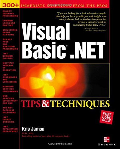 Bestselling and highly acclaimed Visual Basic author Kris Jamsa delivers the ultimate VB.NET resource. Organized by topic and packed with critical information, this book effectively explains complex concepts with precision. Filled with proven techniques and hundreds of solutions that can be put to immediate use easily and effectively, this is a must-have guide for every Visual Basic developer and programmer working with Web services and applications on the .NET platform.