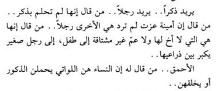قد يكون من الطبيعي أن يصوّب احدهم بندقية إلى رأسك ولكن من الجنون أن نمسك نحن بالبندقية بين أصابعنا لنصوبها إلى قلوبنا كل صباح ،وبعد صراع طويل ينتصر الأمل في الغد لنضعها إلي جوارنا ثم نعاود في الصباح التالي ما صنعناه بالأمس ! في الثلث الأول من الرواية أردت أن أفهم معني "أريد رجلاً" وفي حياتها سليم الذي لو كان رجال الأرض جميعا في نقائه وأخلاقه وحبه لشلمت البشرية الخير والسلام ! تتسارع الأحداث ويتزوجا المُحبان وتنجب أمينة مولدتها الأولى شهد ولا ترضعها الإ أشهر قليلة لتحمل ثانية لتنجب له وهنا أعرف أن الرجل التي تريده هو المولود لتحقق لسليم حلمه وحلم والدته يامنة ..