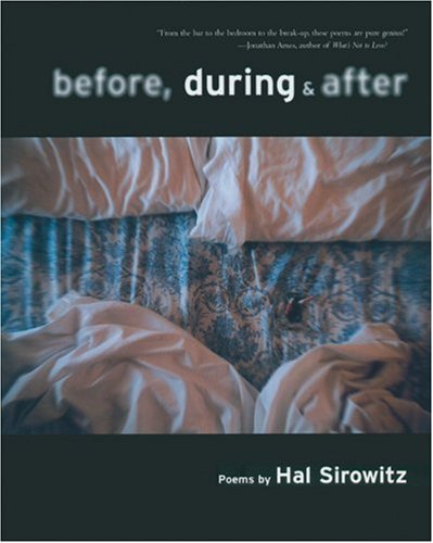 With this collection of poetry, Hal Sirowitz manages cut right to the heart genitals of the matter. That's right. The title refers to before, during and after S-E-X. These being modern times, many of the poems deal with the will-you-call-me-later aspect of the glorious union. There are also discussions of how to dispose of the condom, including how not to spill its contents.