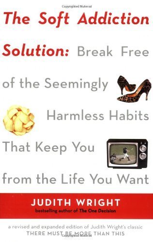 Last month, I had the pleasure of hearing Judith Wright speak on her pet topic of soft addictions. It's a curious topic--we all know what addictions are, and we know they're bad. But "soft addictions"? Intriguing, and her demo reel shows it, with a lineup of major media appearances from all over the country. I went home with her books, The Soft Addiction Solution and The One Decision in my bag, curious about what Ms. Wright might have to say about my self-confessed ability to watch entirely too much television.