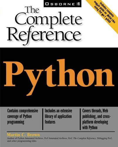 Master Python—the versatile cross-platform development language. This complete reference contains distinct sections,each concentrating on a core angle of the language,including applying the Python libraries,application development,and Web and cross-platform development. This is an ideal resource for any programmer migrating from another language. The Most Authoritative Volume Available on Python Explore all aspects of programming with Python in this comprehensive resource. Expert programmer Martin Brown guides you through the fundamentals of using modules through the use of advanced object orientation classes. You'll learn how to develop complex applications,create multimedia software,and develop interactive Web sites. While written with the experienced programmer in mind, The Complete Reference is an invaluable sourcebook for the beginning programmer as well. This book also covers how to utilize Python's extensive libraries,including tools for reading and parsing SGML,HTML,and XML files.Master programming in the Python language Discover how modules are written and imported into your scripts Use Python's extensive libraries for information processing,file system manipulation,data management,network communication,multimedia,and more Apply Python as a RAD tool for rapid application development Understand specialized instructions for programmers of Perl and other languages Work with SGML,HTML,and XML for advanced Web applications Build GUI-based applications using the Tk interface
