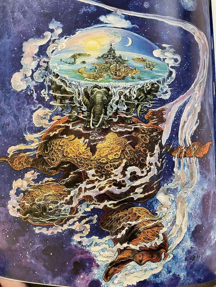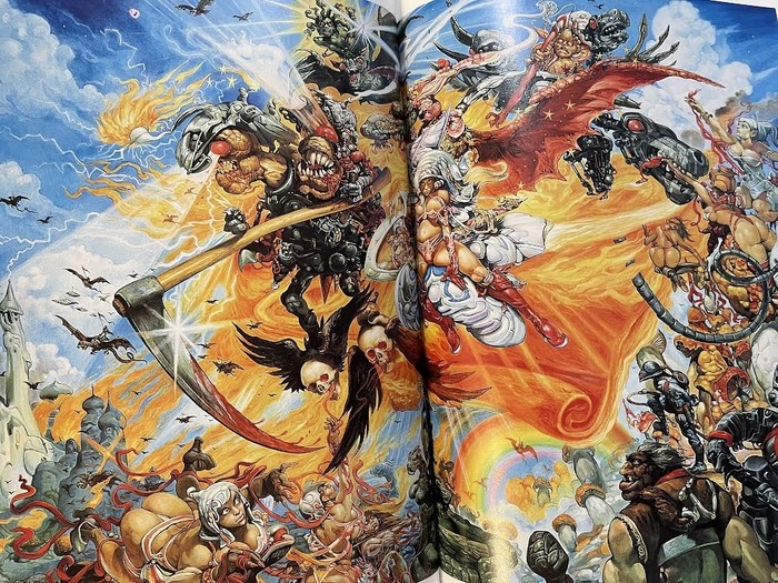 But Kirby's professional opus precedes Discworld by 30 years. The book shows an array of work, ranging from his wildly creative fantasy art, to science fiction and horror pieces and more. He was capable of photorealistic paintings and realistic or abstract representation, but his favorite mode is what is immediately recognizable as his style: