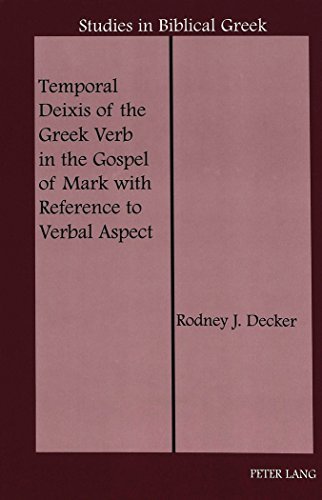 Temporal Deixis of the Greek Verb provides a detailed grammatical study of the Greek verb in the Gospel of Mark focused on the question of temporal reference. Following the theory of verbal aspect proposed by several recent scholars, this book distinguishes between aspect and Aktionsart, semantics and pragmatics. It argues that temporal reference is not grammaticalized by the tenses of the Greek verb. Instead, koine Greek indicates these relationships through contextual means (temporal deixis). The full temporal range of usage of the verb in Mark's Gospel is examined, deictic indicators are catalogued, and selected passages are used to illustrate the ways in which time is indicated. This linguistic study provides a basis for more accurate exegesis of the text of Mark and other similar writings.